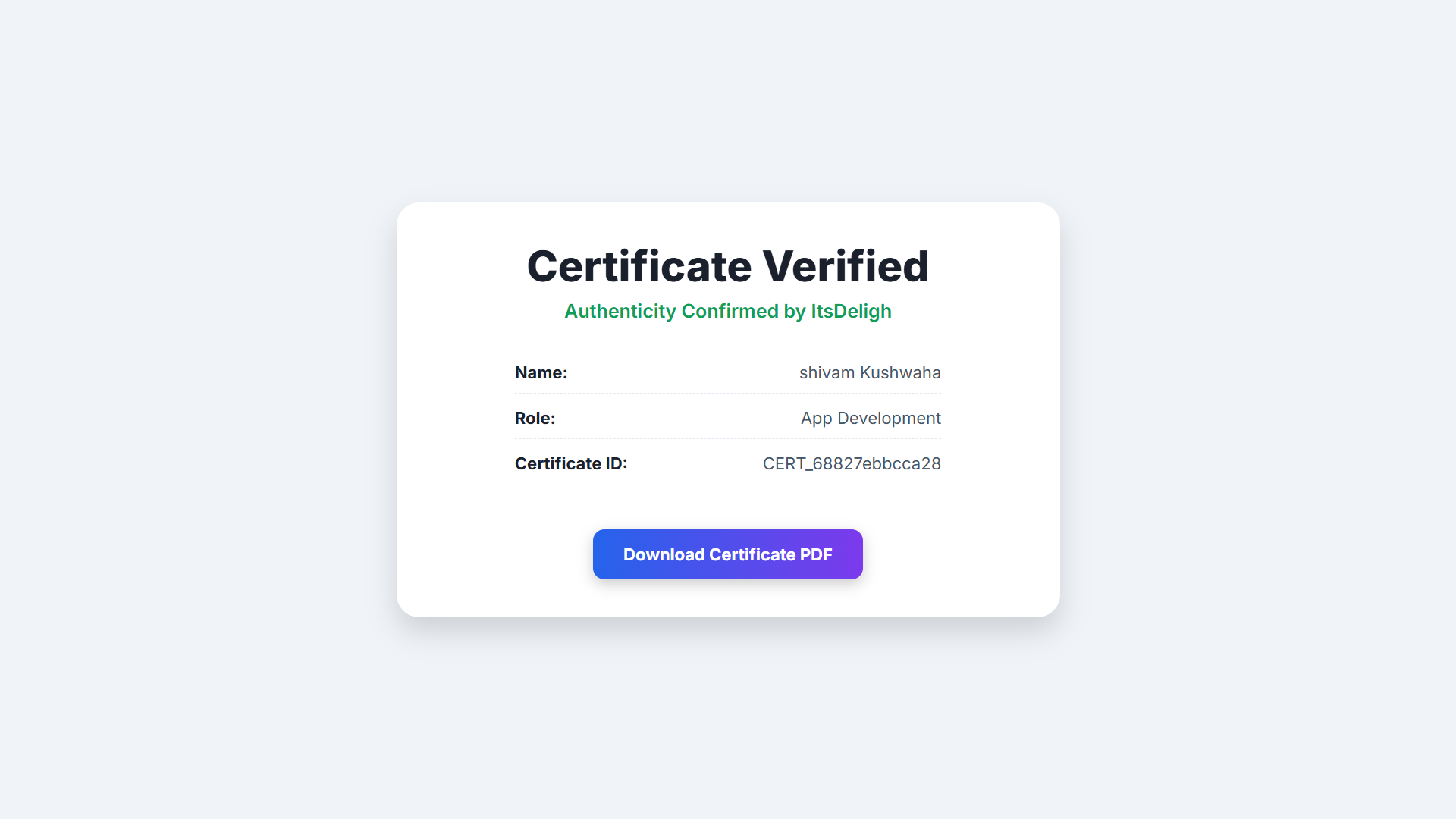This is a tool to generate certificates for Competitions and Olympiads either it is a internship or a training program. Use case are for institutes or Organizations to issue verifiable certificates on their website.